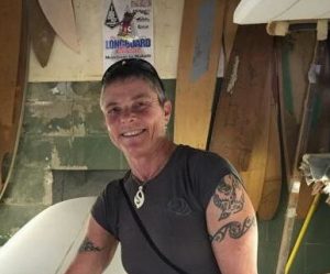 Roxanne (“Rox”) puts the “surf” in Surfcat Cafe & Adoptions. A diehard surfer and animal lover, Rox has been graced with the company of cats all of her life. When she is not shredding waves at the local breaks, Rox teaches U.S. History, World History, and physical education, at the middle school level. Rox got involved with cat rescue, fostering, and adoptions, through her BFF and roomie Leslie. Rox has sometimes been called the “cat whisperer”, as even the most frightened feline eventually warms up to her. Rox is also Surfcat Cafe & Adoption’s artist in residence, chief writer, and reality checker.